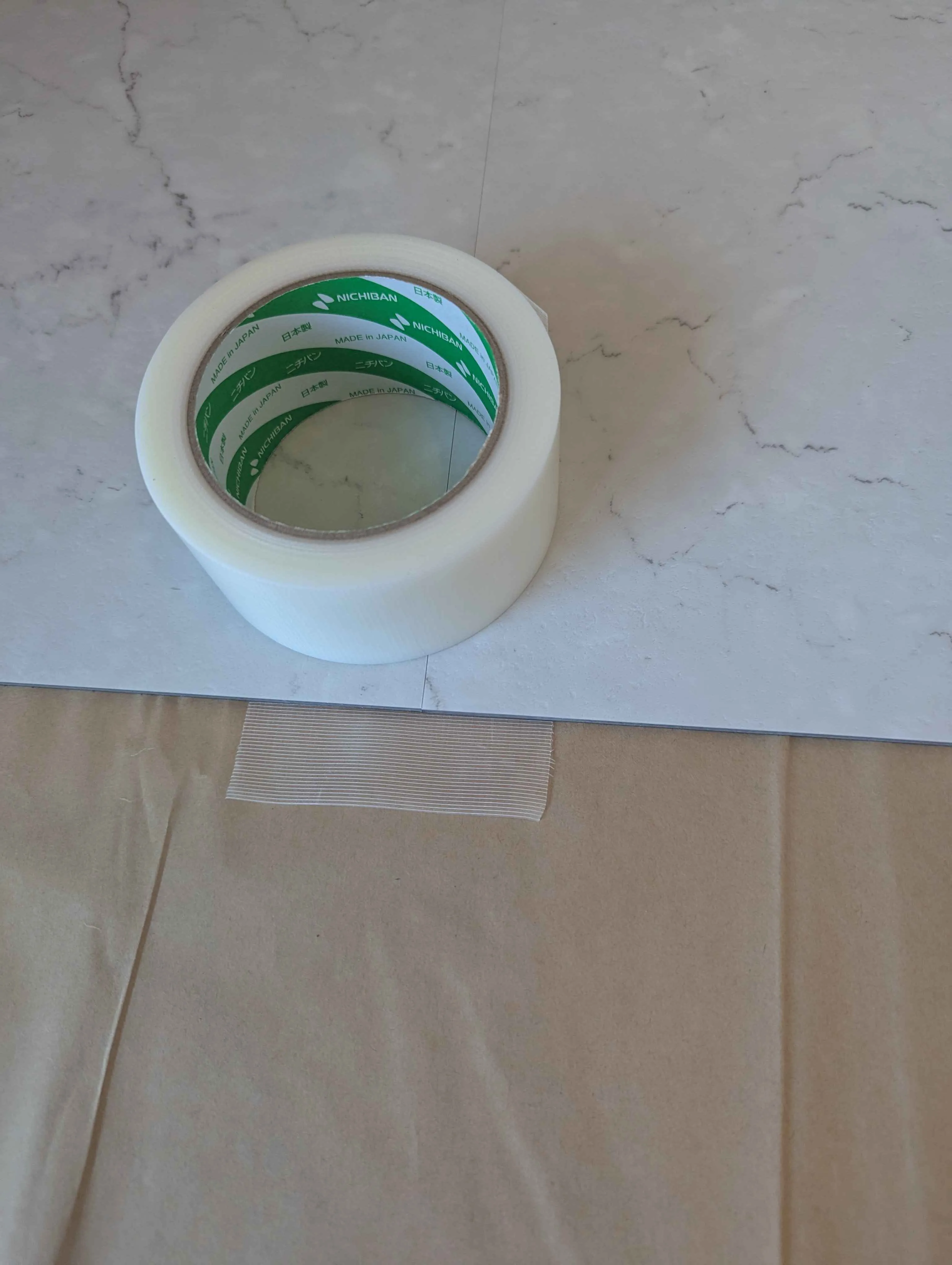 防カビシートを敷いたから起きている問題だと思いますが、シートを重ねている箇所のタイルが若干浮いてきた。