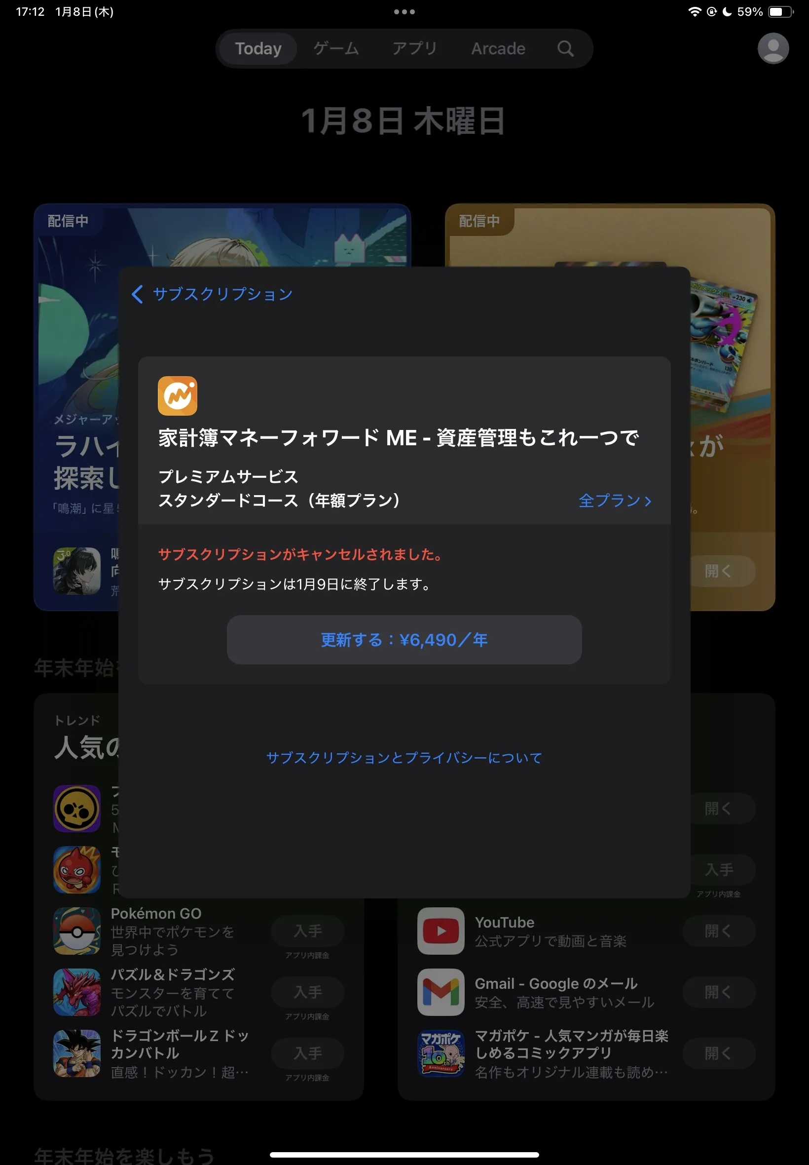 Apple Store のサブスクリプション管理から、マネーフォワード ME の更新を停止する(自動更新オフ)