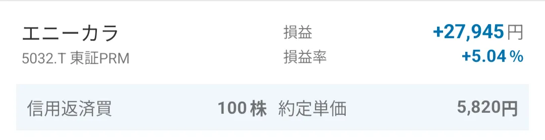 - 返済:2025/10/14|100株|平均約定単価 5,820円
