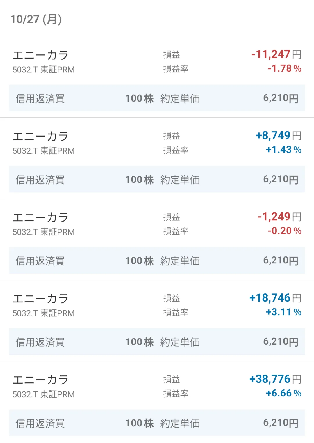 2025/10/20 → 2025/10/27|ショート|ANYCOLOR|500株|純 +52,550円