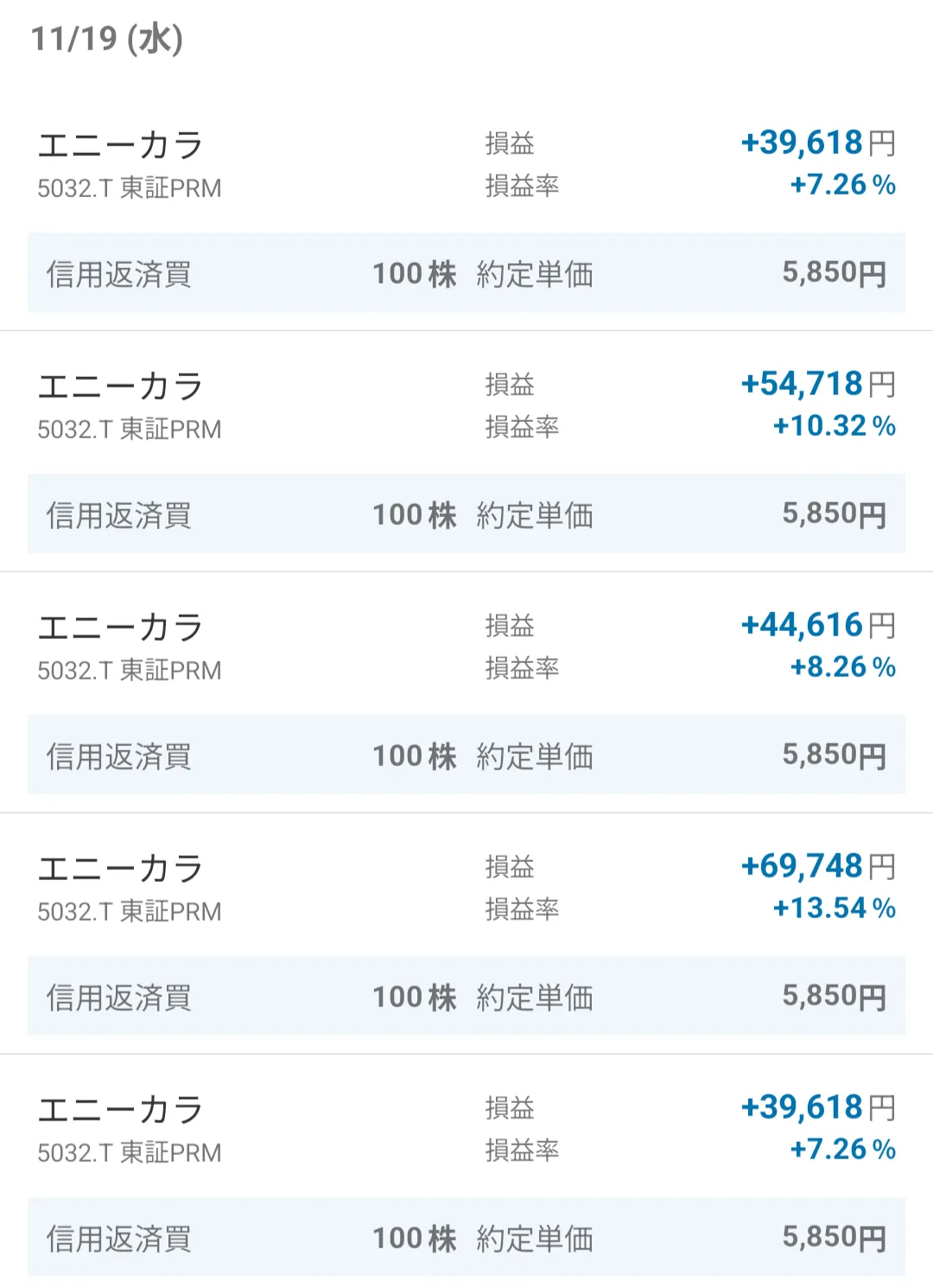 - 返済:2025/11/19|500株|平均約定単価 5,850円
