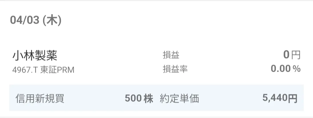 - 新規建て:2025/04/03|500株|約定単価 5,440円