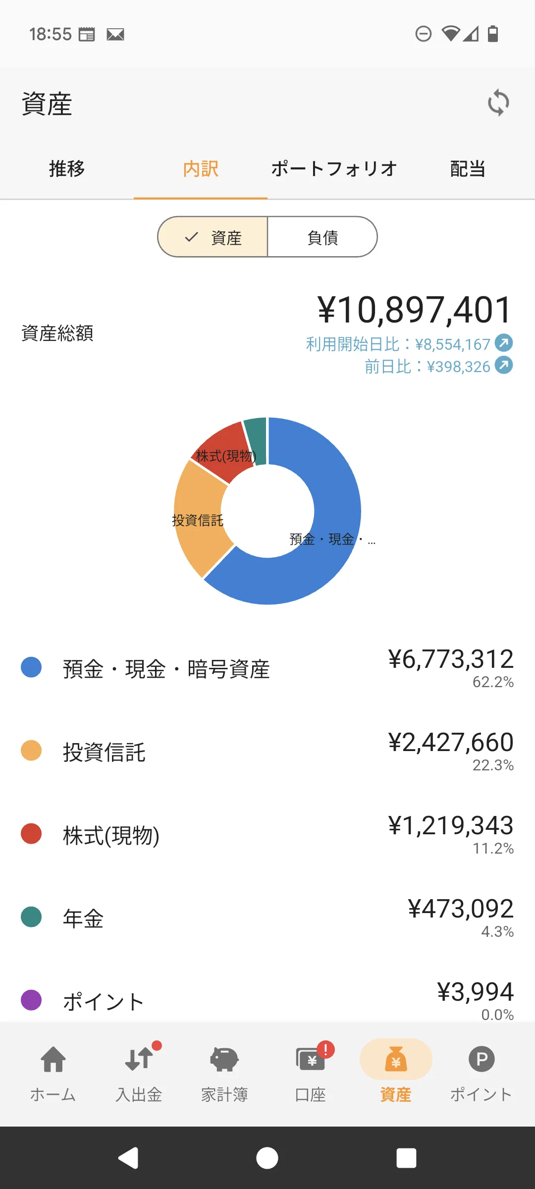 例として、2025/8/25時点での、私の資産内訳概算です。