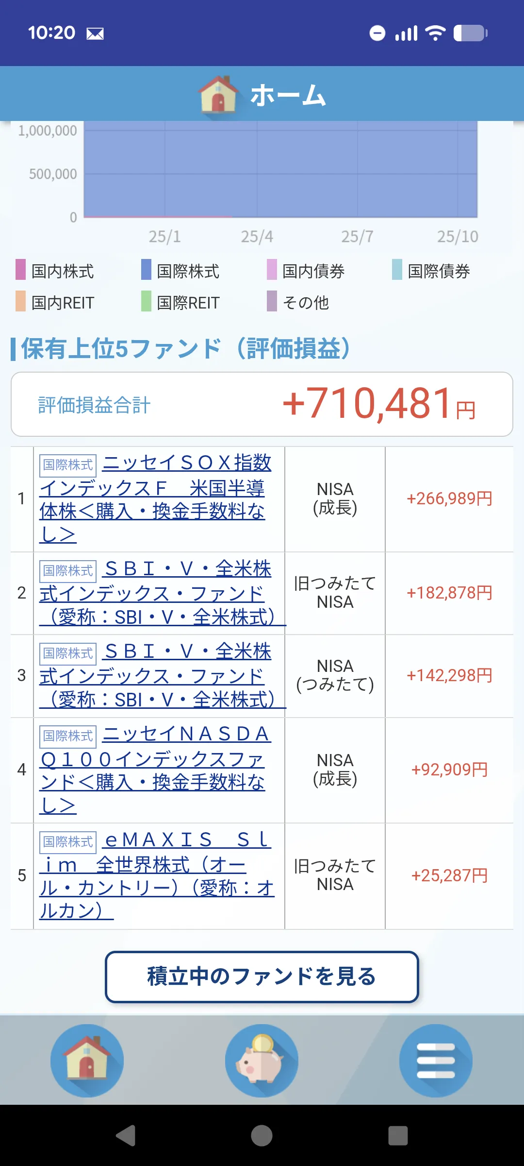 一方で、現物は国内株を買っているので、そこで地域分散(日本と米国)のバランスを取っています。