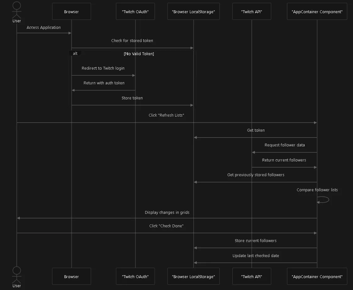 処理の流れはこんな感じ。初めて触るReactを意識しながら設計するのが大変でした。Twitch OAuth周りとか。